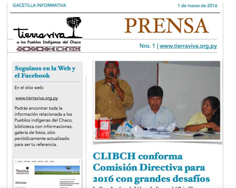 Presentamos nuestro Boletín Informativo de Prensa, a ser remitido en forma quincenal a los medios de comunicación, para actualizar las informaciones relacionadas a pueblos indígenas del Chaco paraguayo, sus reivindicaciones, sus conquistas, sus inquietudes.