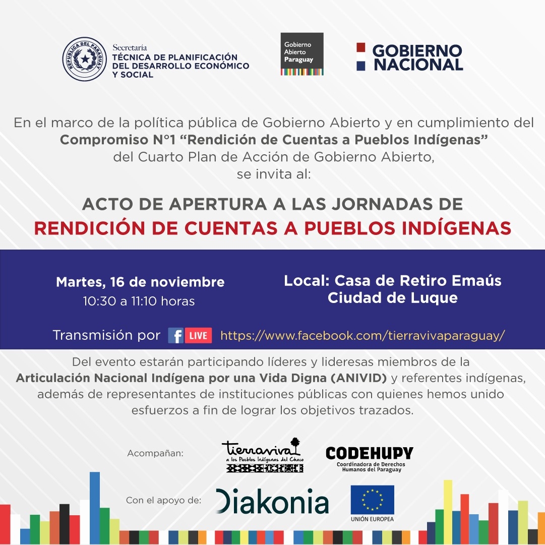 La campaña la realiza la Articulación Nacional Indígena por una Vida Digna (ANIVID) y cuenta con el acompañamiento de Tierraviva y la Coordinadora de Derechos Humanos del Paraguay (Codehupy), y el apoyo de la Unión Europea y la agencia Diakonia.